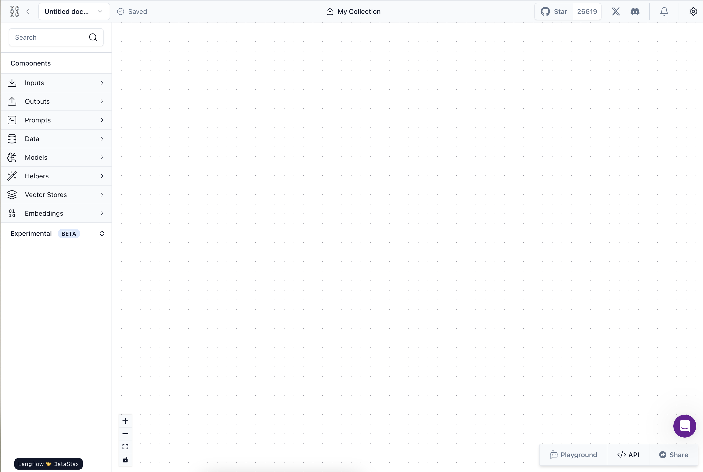 Go to DataStax Langflow dashboard and create a new project with the "Blank" template.